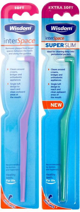 Wisdom Interspace is designed top remove plaque from the more difficult to reach areas between the teeth and along the gum margin. It is also effective at cleaning around crowns, bridgework and orthodontic appliances.